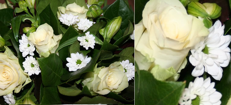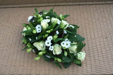 Volgend voorbeeld is een klassiek grafwerkje met groen en witte bloemen maar indien je de persoon echt goed gekend hebt kan je bloemen verwerken die een betekenis hebben voor die persoon.