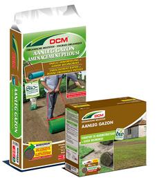 voor je zaait DCM Organische Meststof Aanleg Gazon. Werk lichtjes in, maak de grond effen en druk licht aan.