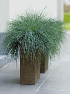 Siergrassen zijn doorgaans ijzersterk, maar in pot moeten ze het stellen met een beperkte ruimte, en hebben ze meer last van droogte en vorst dan in volle grond. Geef hun wortels dus zeker genoeg plaats; een pot van 30 cm diameter is ideaal. Kleinere grassen als Hakonechloa macra, Eragrostis curvula ’Totnes Burgundy’ of Pennisetum x advena ’Rubrum’ kun je in een pot van 20 cm houden. Forse kleppers als Miscanthus hebben meer ruimte nodig, zo’n 60 tot 70 cm diameter. Zet strakke, recht opgaande grassen in een stevige bak, en leg wat bakstenen of kasseien op de bodem, zo waait je bak zeker niet om. Vermijd een bolvormige pot: wanneer je je gras moet verplanten, krijg je er de kluit maar moeilijk uit.