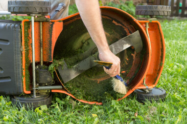 De grasmachine, bosmaaier en verticuteermachine hebben hun dienst opnieuw bewezen. Voor ze op stal kunnen, dienen de resten van het maaien te worden verwijderd om te voorkomen dat de messen bot worden. Check eerst als de stekker uit het stopcontact is voor je aan de klus begint. Werken de machines op batterijen? Verwijder dan de accu. Zo voorkom je dat ze beginnen te draaien terwijl je bezig bent met het reinigen van de messen. Ga omzichtig om met de machines om lakschade te vermijden. Leg de machine op haar zijkant en verwijder grasresten met een houten spatel. Reinig de messen verder met een borstel. Met een grasmaaierborstel DUO heb je maar 1 tool nodig om beide klussen te klaren. Vermijd het gebruik van water om roestvorming te voorkomen!
