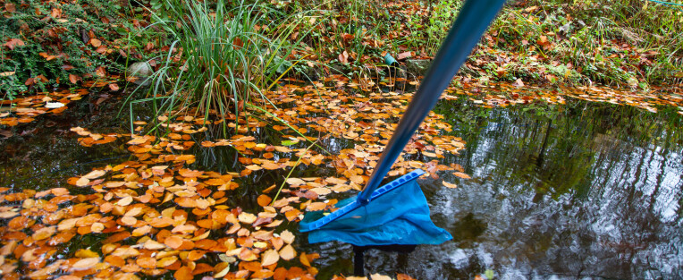 - Haal zoveel mogelijk afgevallen blad en rommel uit de vijver om verrotting tegen te gaan. Verrotting ontregelt het biologisch evenwicht van de vijver sterk.