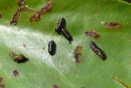 Het zijn kleine zwarte larven die maximaal 1 cm worden die zich een weg vreten doorheen de bovenste bladrand van waterlelies. Deze zwarte diertjes zijn larven van het kleine waterlieliekevertje.
