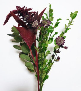 - Combineer accentbloemen zoals Kruisdistel, stengels met meerdere kleine bloemen zoals Eupatorium en groen zoals siergras of Monstera. Geef het boeket een extra sfeer met wilgentakken of kersenbloessems.