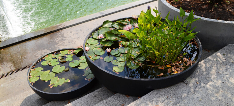 Halve eiken vaten zijn klassiekers voor het bouwen van minivijvers. Ze hebben een natuurlijke uitstraling en passen op vrijwel elk terras. Natuurlijk zijn er genoeg alternatieven, zolang ze maar waterdicht en groot genoeg zijn zodat er voldoende water in kan.