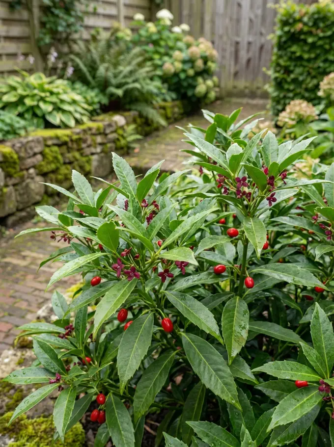 Skimmia is een populaire wintergroene struik, maar hij kan te maken krijgen met verschillende ... licht en water. Voor potcultuur kunnen camellia japonica en andere zure bodemsweetheden onderdak vinden