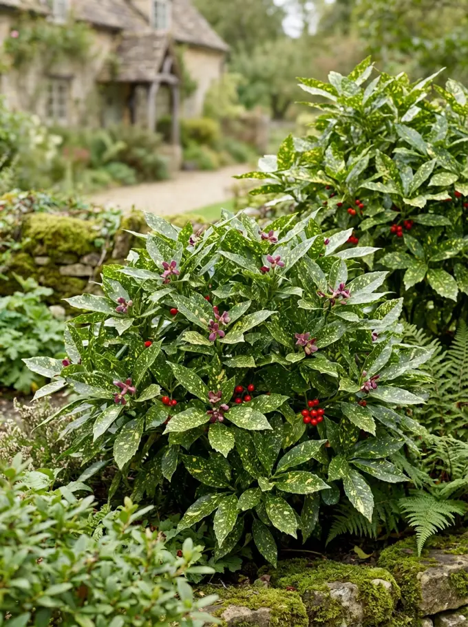 vochtregime en lokale temperaturen. Camellia japonica – geschiktheid voor diepe tot halfschaduw, glanzende ... standplaats; vermijd directe middagzon. Skimmia japonica – winterbloeier met geurige bloemen en rode bessen