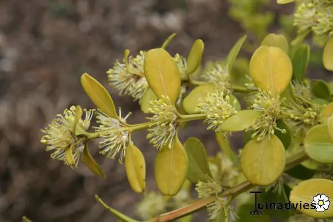 zijn (bij Mahonia bealei en de iets kleinere M. japonica) of nog langer (zelfs 40 cm en sierlijk overhangend ... bloeitinten. Bloeien in maart. De ranonkelstruik (Kerria japonica) Bloeit iets later (april-mei). De bloemkleur