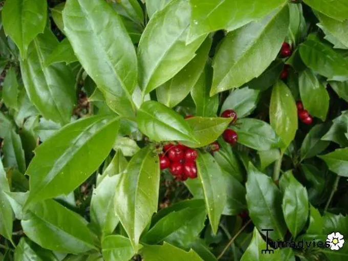 Skimmia Skimmia japonica is een compactgroeiende wintergroene struik met