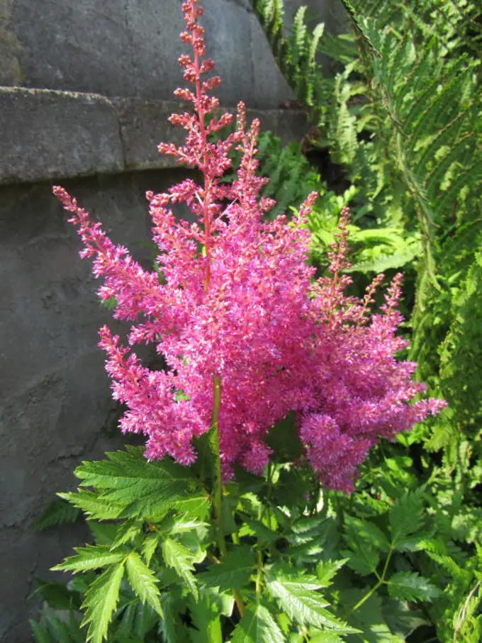 Door planten te kiezen die met elkaar contrasteren qua vorm of textuur hoeft de schaduwpartij ... bijvoorbeeld wit (Astilbe 'Deutschland'), roze (Astilbe japonica 'Bonn'), rood (Astilbe arendsii 'Etna') of zelfs