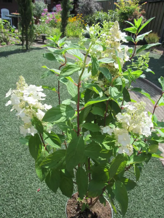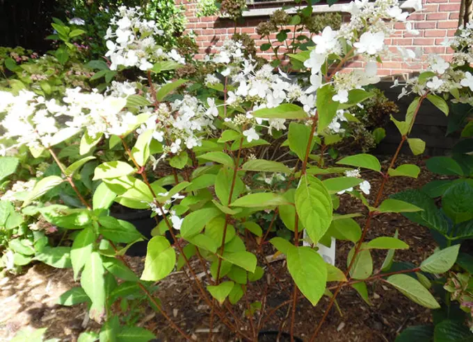 de mooie witte bloemen beschadigd en besmeurd. Hydrangea paniculata ‘Limelight’ is een veel beter alternatief ... familie telt ook een erg mooie klimhortensia, Hydrangea anomala subsp. petiolaris, voor een (half)schaduwmuur