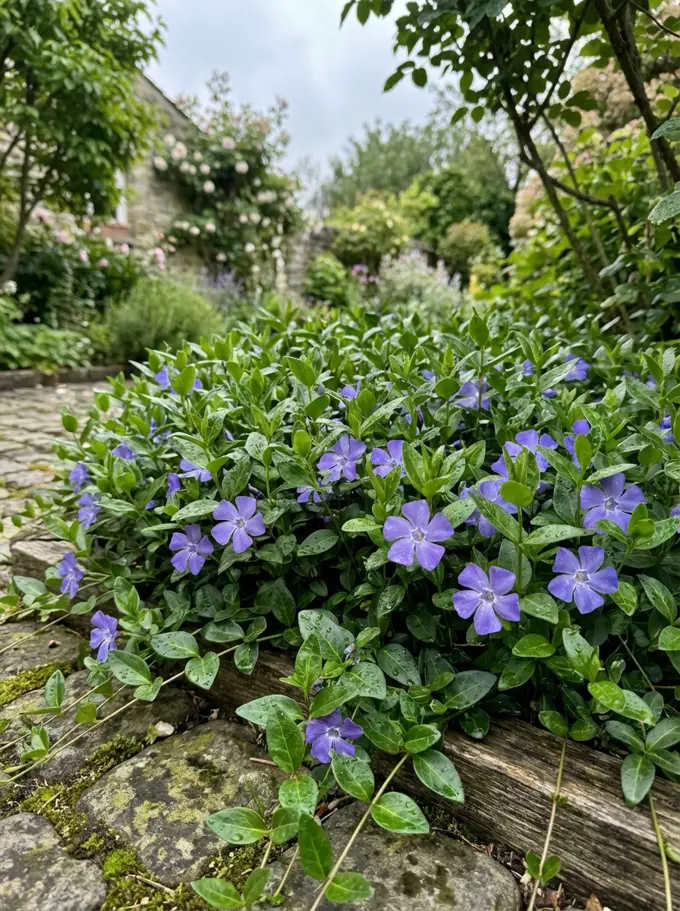 onderhoud; kan bij natte grond wat uitzetten. Vinca minor – maagdenpalm; vormt een tapijt langs het oppervlak ... halfbeschaduwde plekken doen het goed met Ajuga reptans, Vinca minor of Lamium maculatum. Let op drainage en waterafvoer;